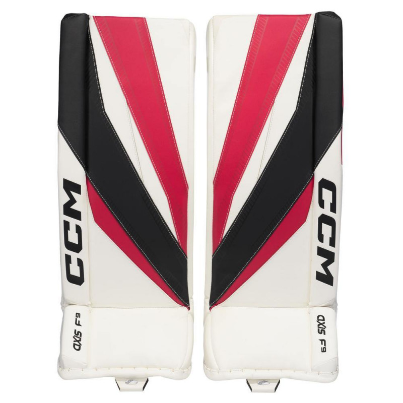 CCM AXIS F9 INT Goalie Pads (White, 31″ (30″+1″))